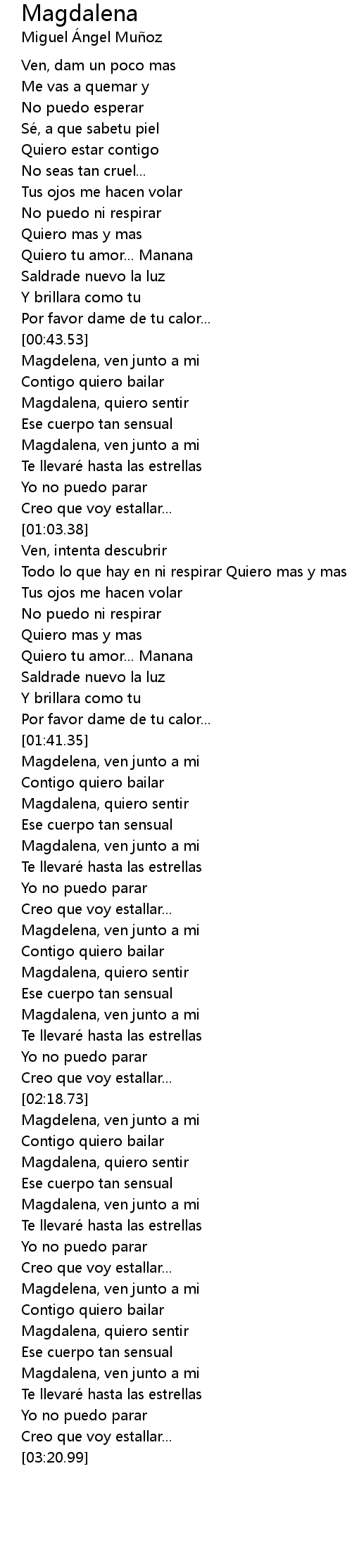 | [01:10.11] | Todo lo que hay en ni respirar Quiero mas y mas |