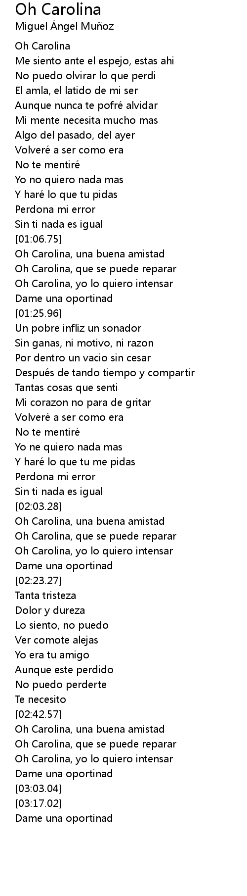 | [02:48.57] | Oh Carolina, que se puede reparar |