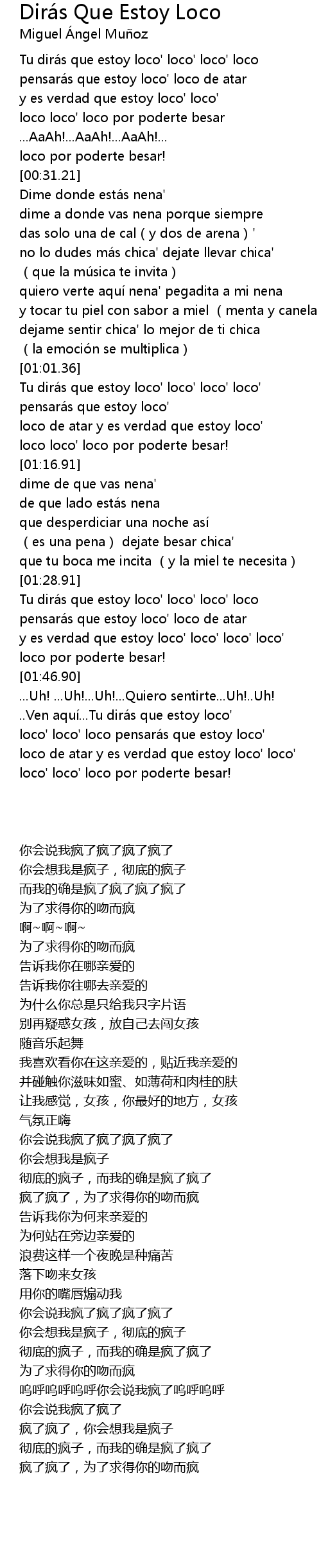 | [01:31.71] | Tu dirás que estoy loco' loco' loco' loco |