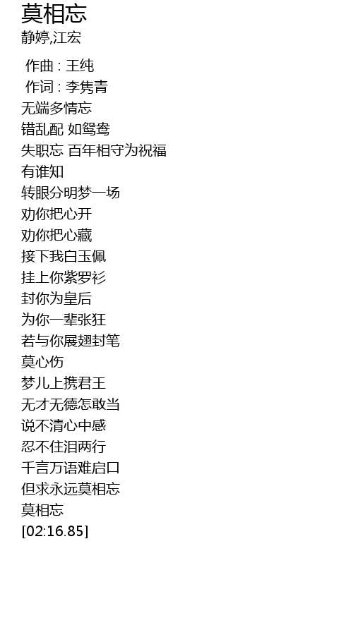 | [01:52.69] | dàn qiú yǒng yuǎn mò xiāng wàng |