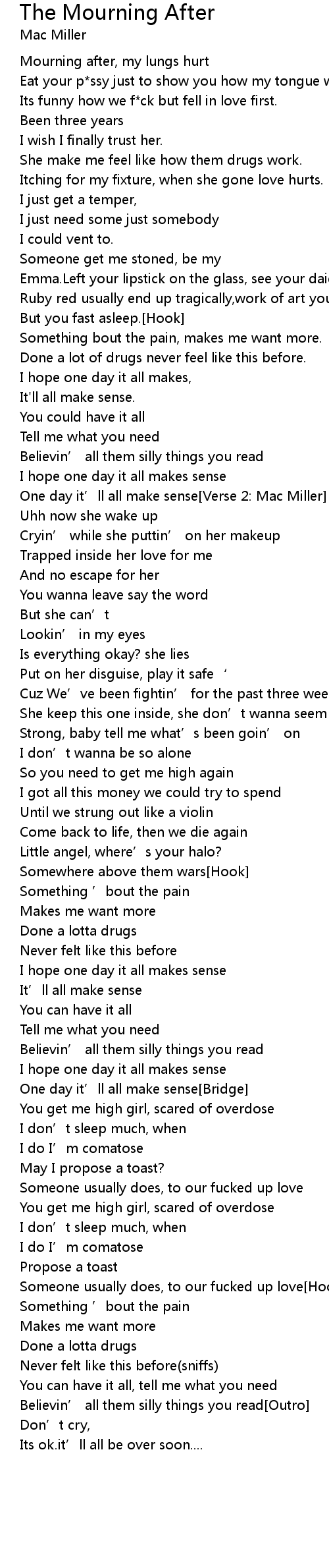 | One day it' ll all make sense Verse 2: Mac Miller | |