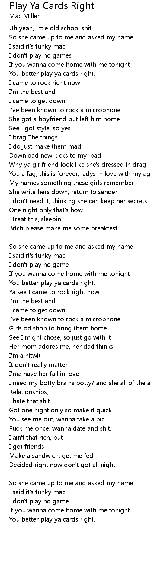 You better play ya cards right. |