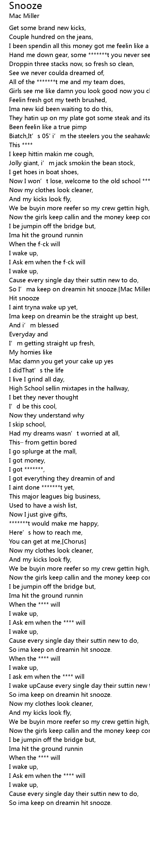 | So I' ma keep on dreamin hit snooze. Mac Miller Verse 2 | |