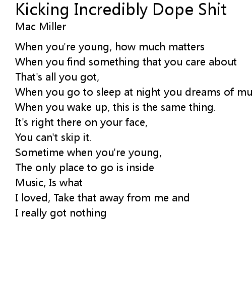 | Song | Kicking Incredibly Dope Shit |