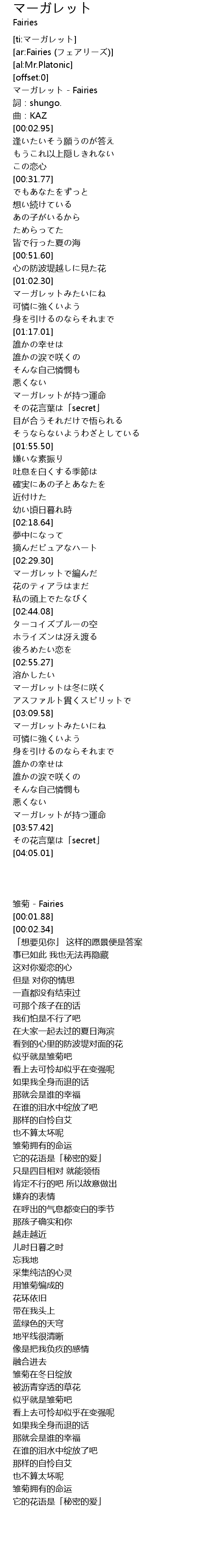 | [00:00.53] | マーガレット - Fairies |