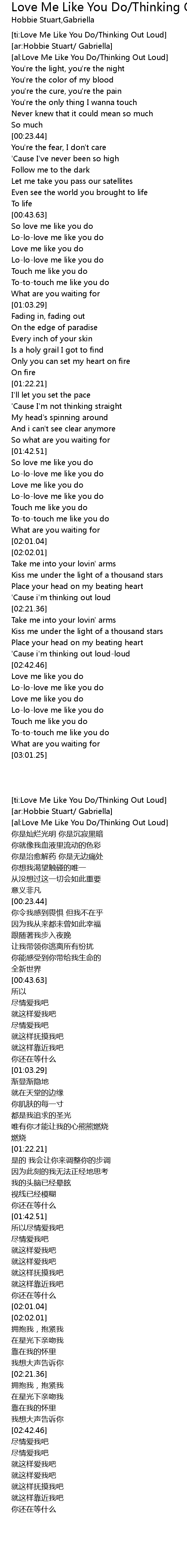 [ti:Love Me Like You Do/Thinking Out Loud] |