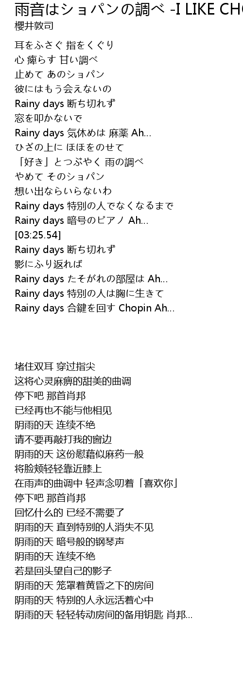 | [03:53.52] | Rainy days 合鍵を回す Chopin Ah… |