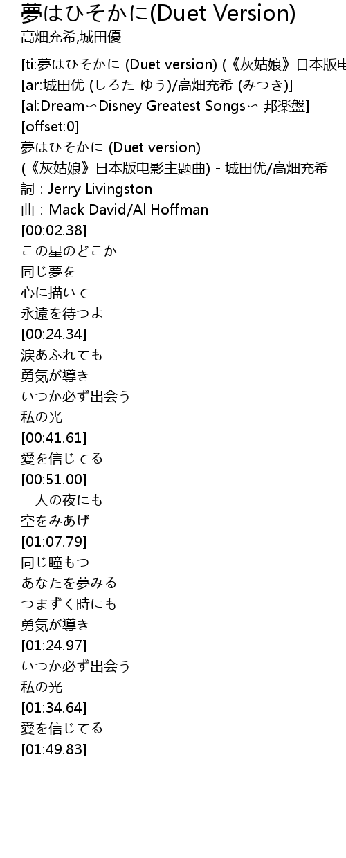 | [ti:夢はひそかに (Duet version) (《灰姑娘》日本版电影主题曲)] | |