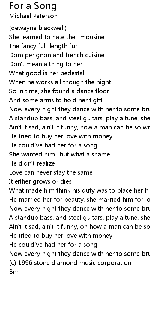 He could've had her for a song |