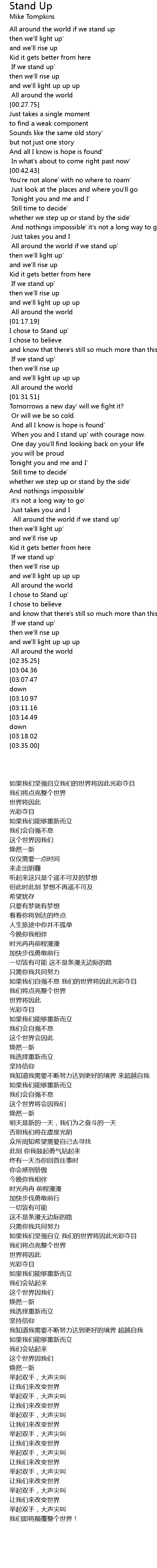 All around the world if we stand up' |