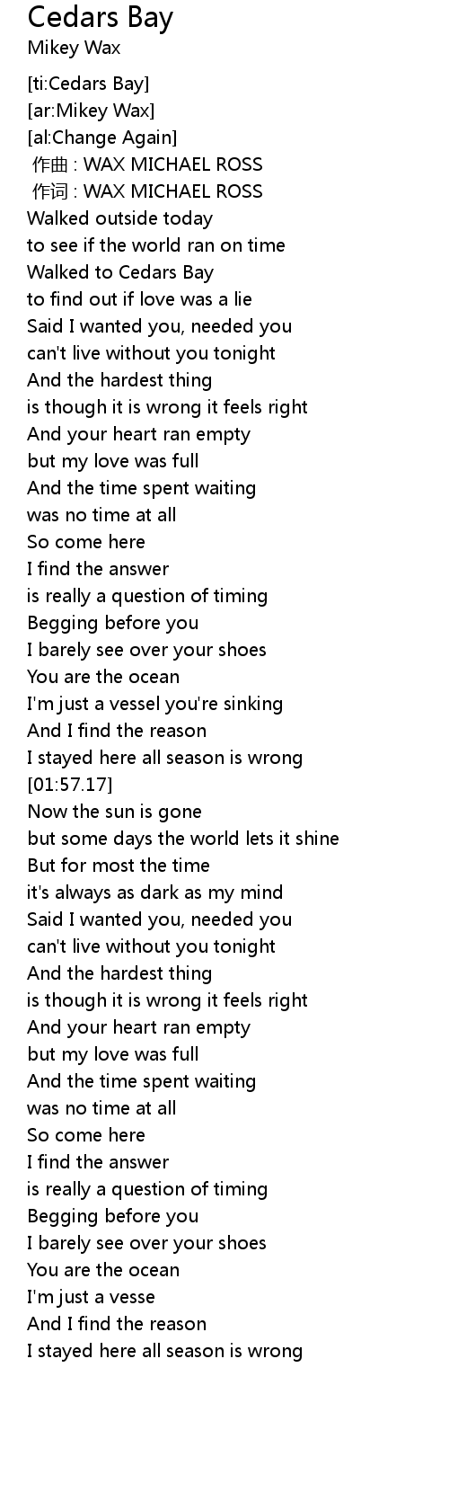 | [00:01.000] | zuò cí : WAX MICHAEL ROSS |