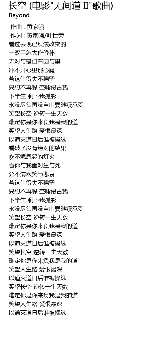 | Song | 长空 (电影"无间道 II"歌曲) |