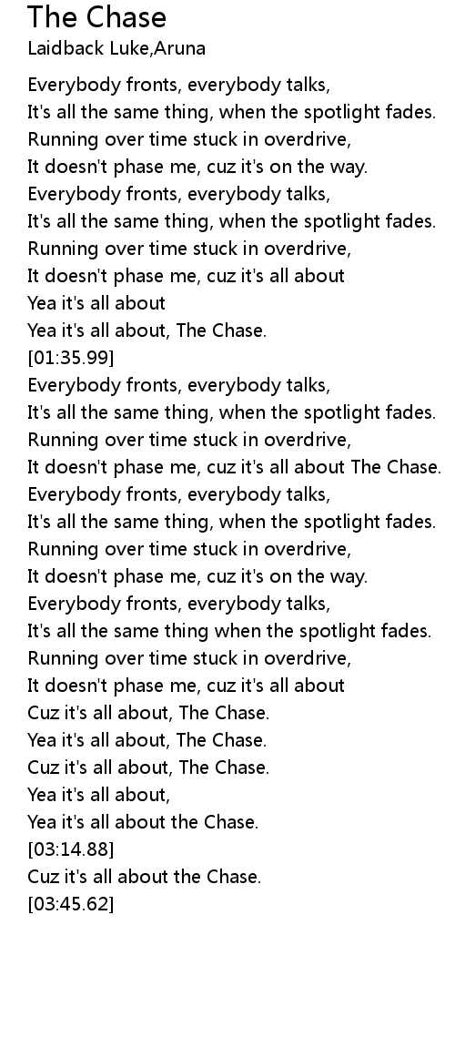 | [02:45.49] | Cuz it's all about, The Chase. |