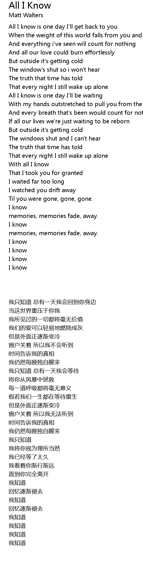 All I know is one day I'll be waiting |