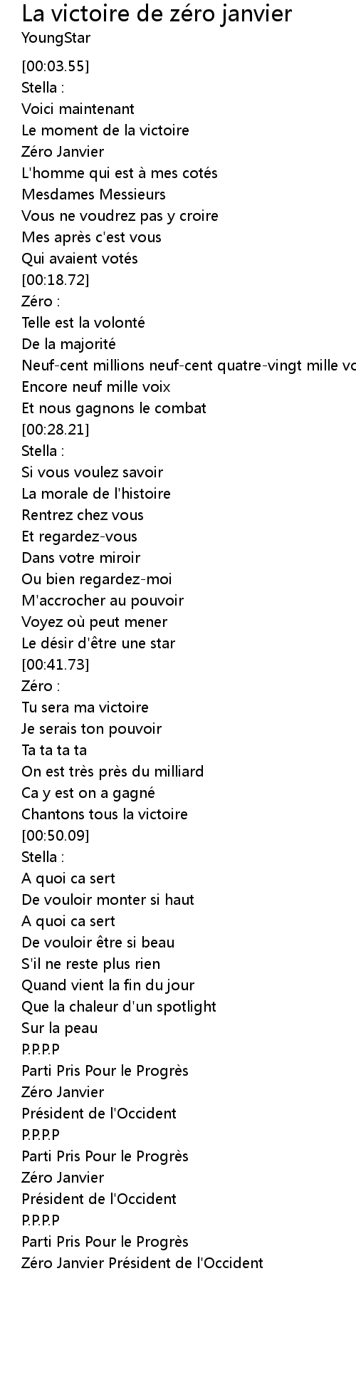 | [01:19.26] | Zéro Janvier Président de l'Occident |