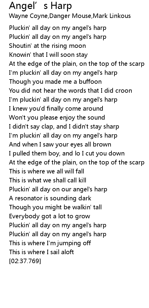[00:36.455] I'm pluckin' all day on my angel's harp