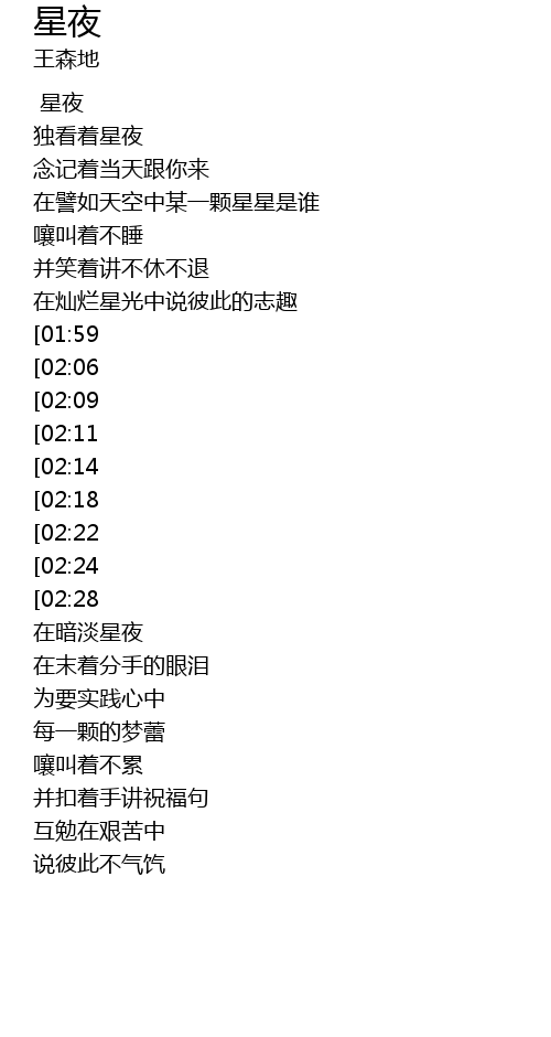 | [00:17] | 独看着星夜 |