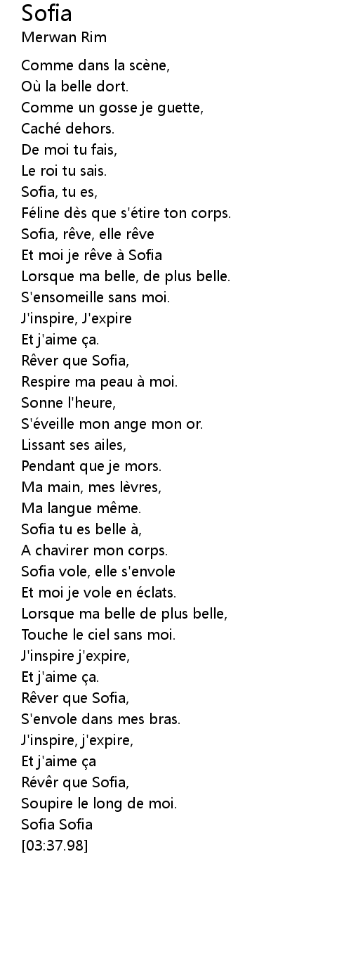 | [01:56.01] | Sofia tu es belle a, |