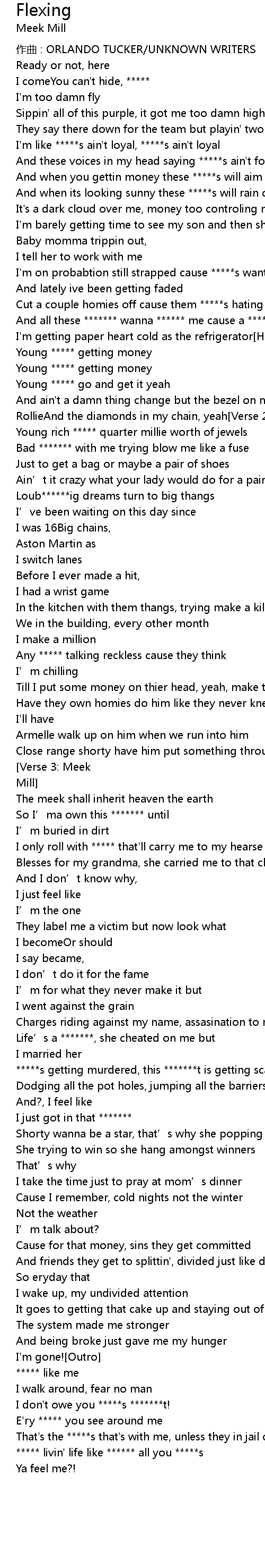 | I' m getting paper heart cold as the refrigerator Hook: Meek Mill | |