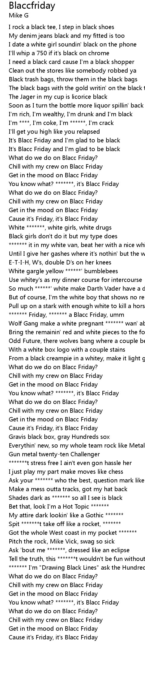 | ******* Friday, ******* a Blacc Friday, umm | |