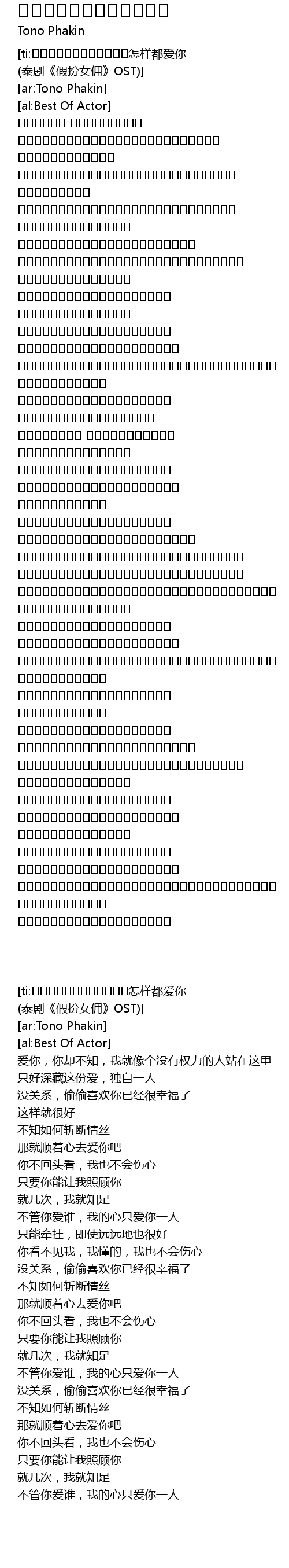 [ti:รักเธออยู่ดี怎样都爱你 (泰剧《假扮女佣》OST)] |