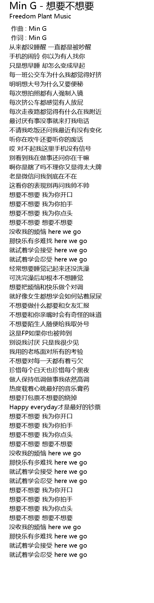 | Song | Min G - 想要不想要 |