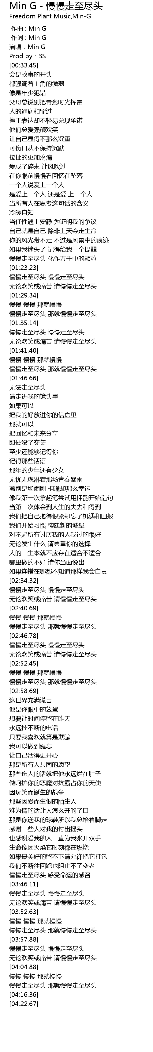 | [03:56.88] | màn màn zǒu zhì jìn tóu nà jiù màn màn zǒu zhì jìn tóu |