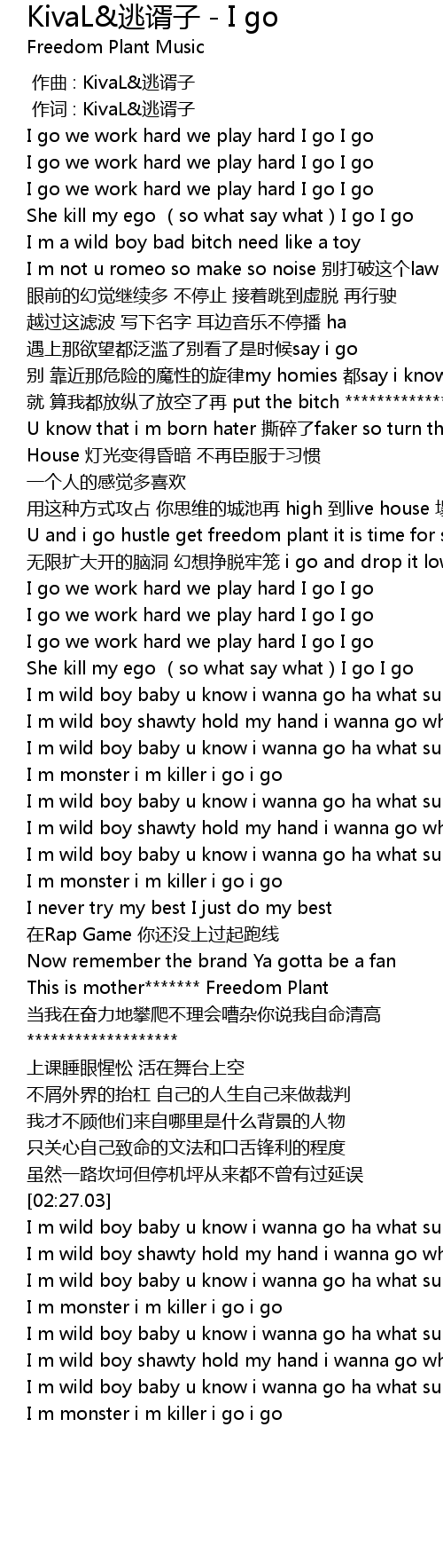| [00:13.90] | I go we work hard we play hard I go I go |