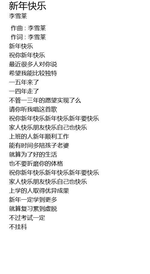 | [00:23.94] | zhù nǐ xīn nián kuài lè xīn nián kuài lè xīn nián yào kuài lè |