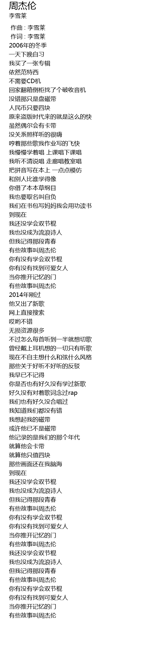 | [03:15.200] | yǒu xiē gù shì jiào zhōu jié lún |