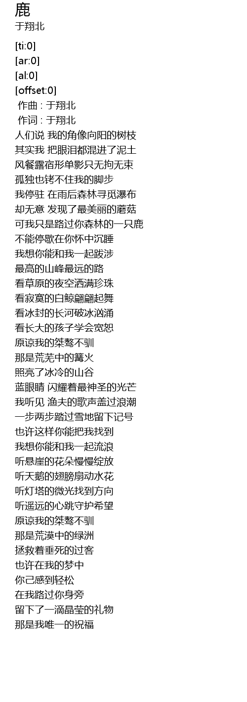 | [00:55.95] | 可我只是路过你森林的一只鹿 |