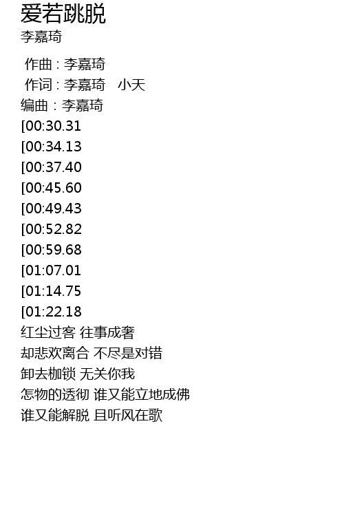 | [00:00.00] | 作曲 : 李嘉琦 |