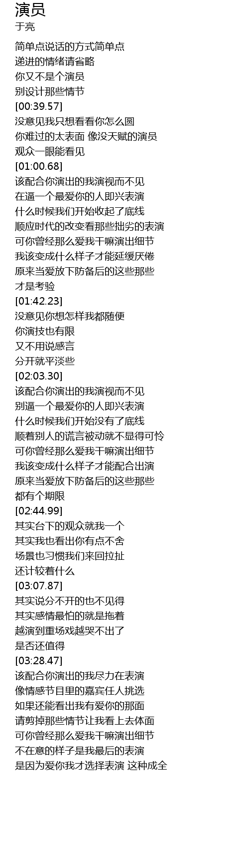 | [00:51.80] | 你难过的太表面 像没天赋的演员 |