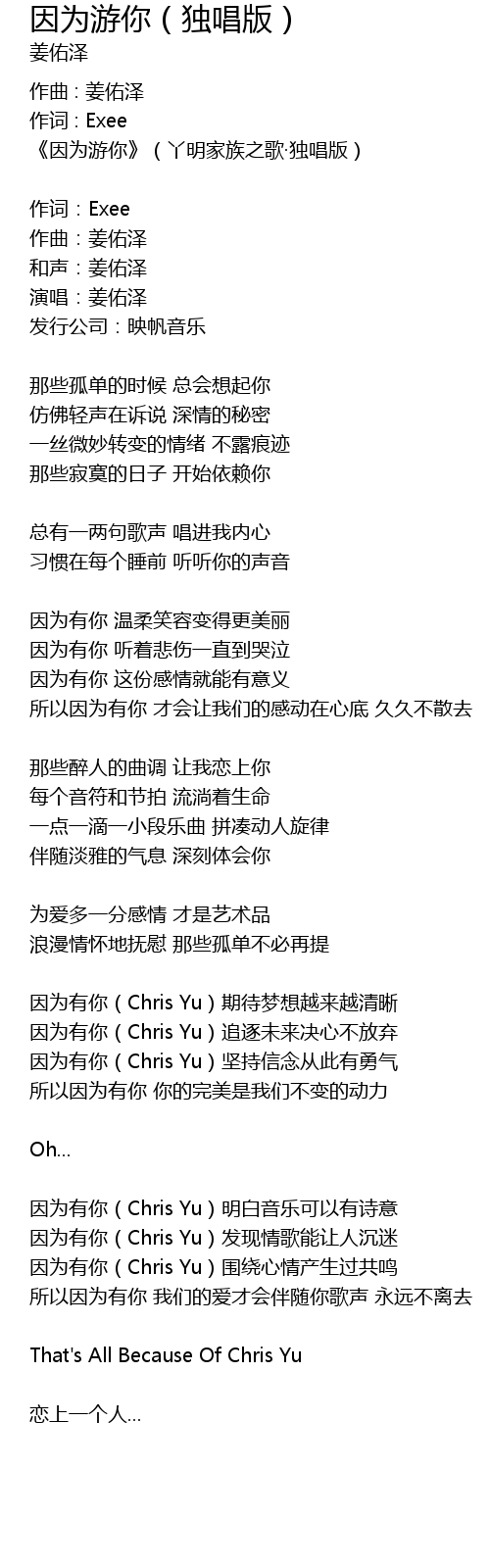 | yīn wèi yǒu nǐ Chris Yu míng bái yīn yuè kě yǐ yǒu shī yì | |