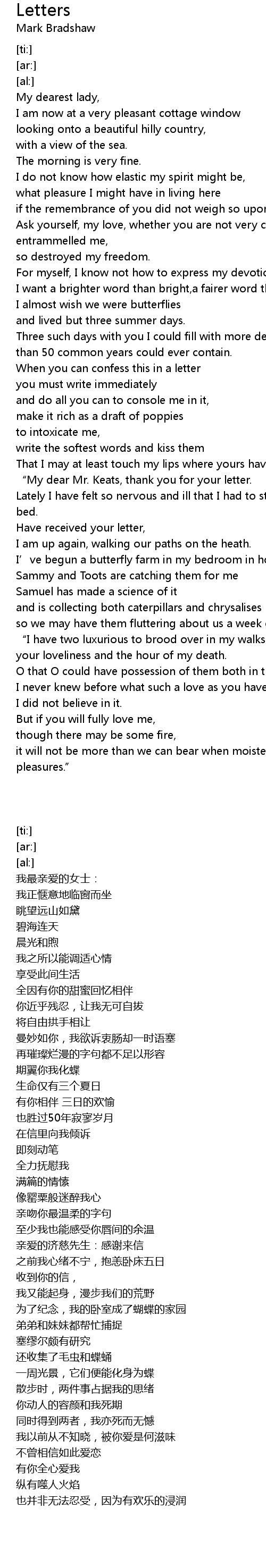 | [02:14.42] | " My dear Mr. Keats, thank you for your letter. |