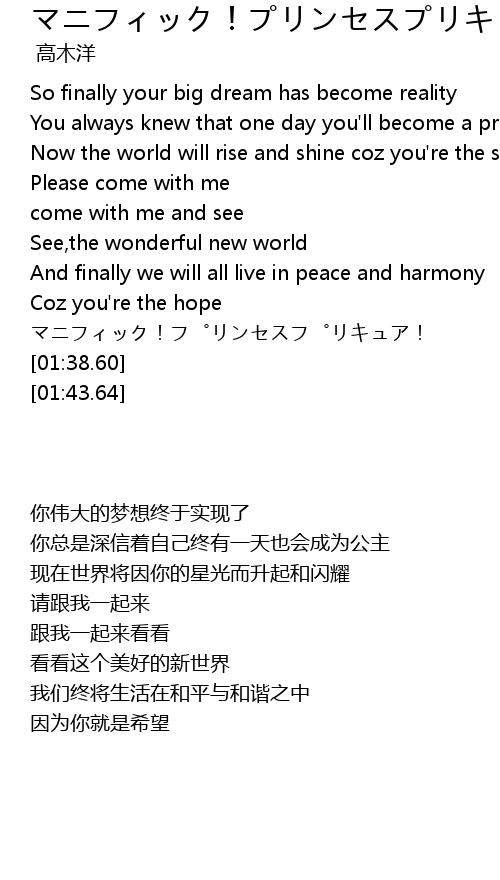 | [01:34.47] | マニフィック!プリンセスプリキュア! |