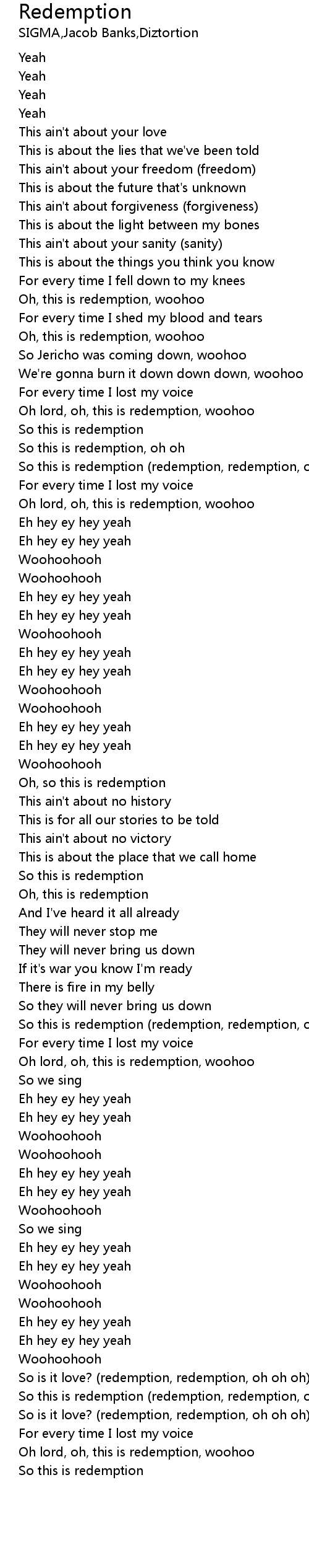 So this is redemption, oh oh |
