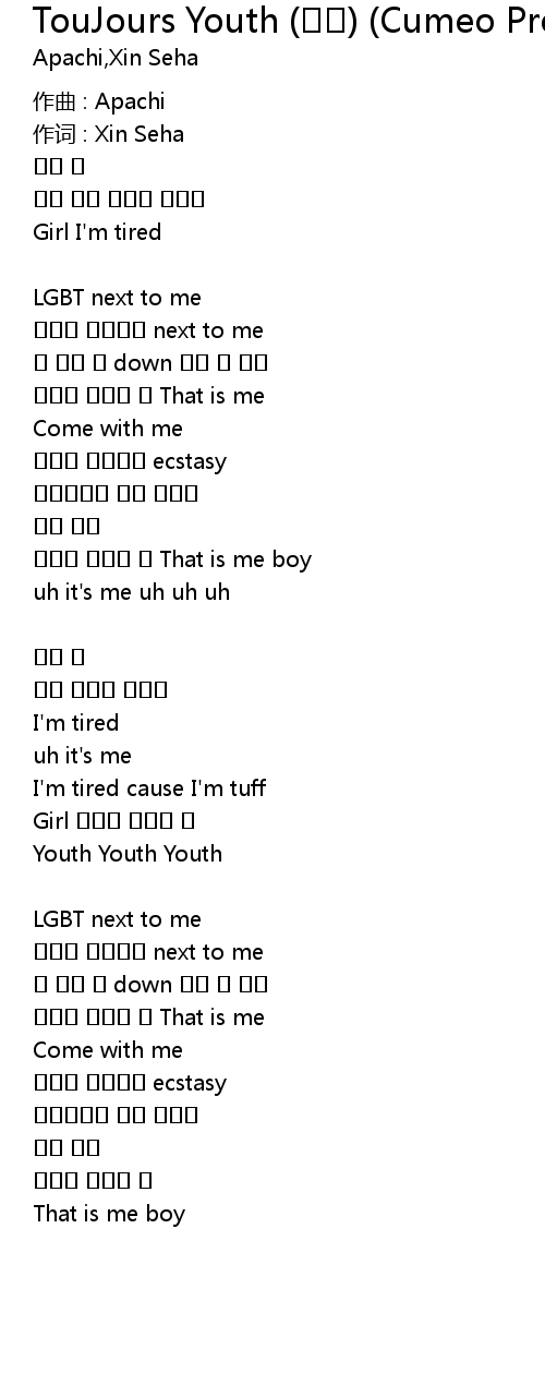 TouJours Youth (청춘) (Cumeo Project Remix) TouJours Youth  Cumeo Project Remix Lyrics