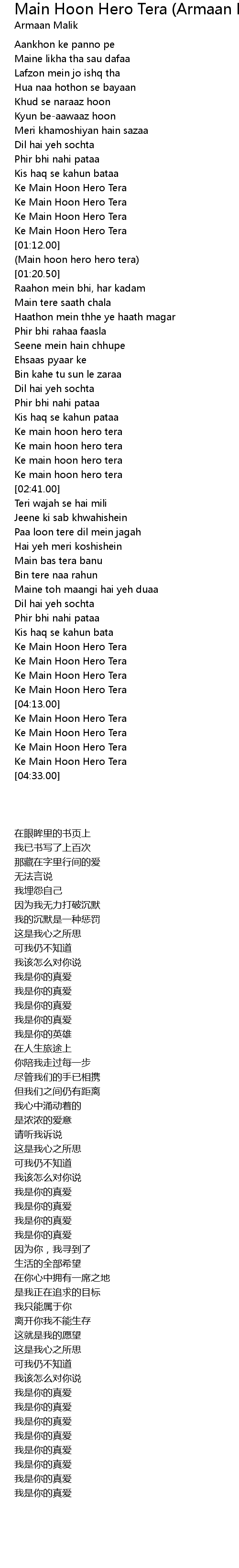 Main Hoon Hero Tera (Armaan Malik Version) Lyrics