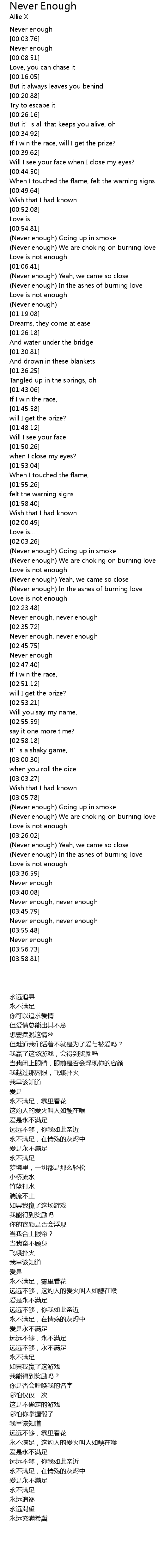 | [03:53.48] | Never enough, never enough |