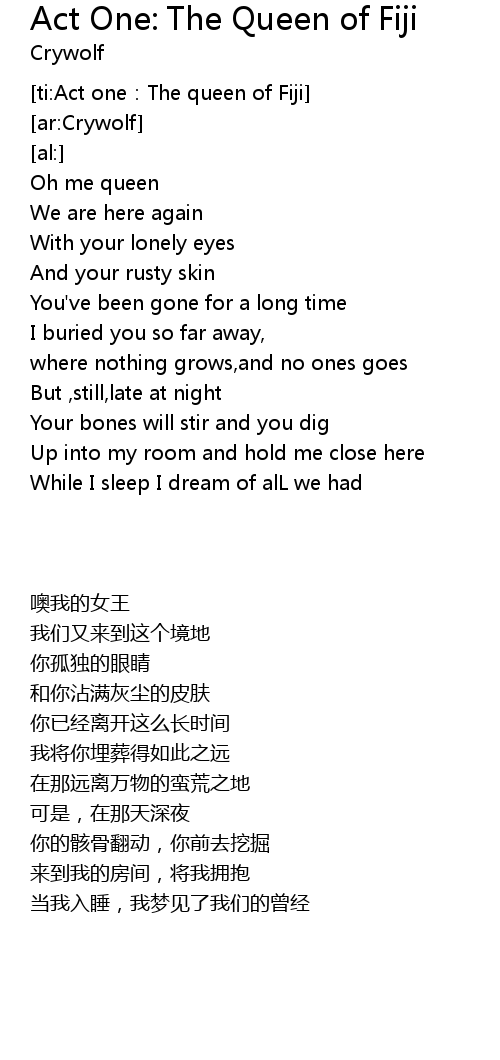 | [ti:Act one:The queen of Fiji] | |