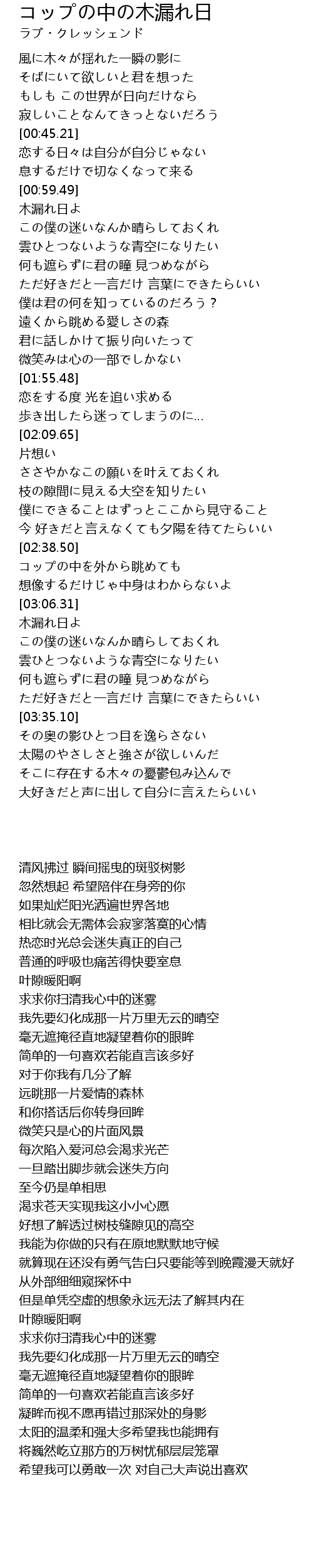 | [01:34.92] | 遠くから眺める愛しさの森 |