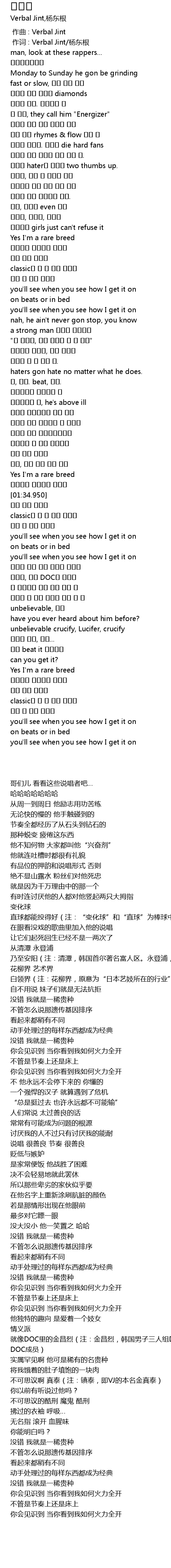 | [00:01.00] | 作词 : Verbal Jint/杨东根 |
