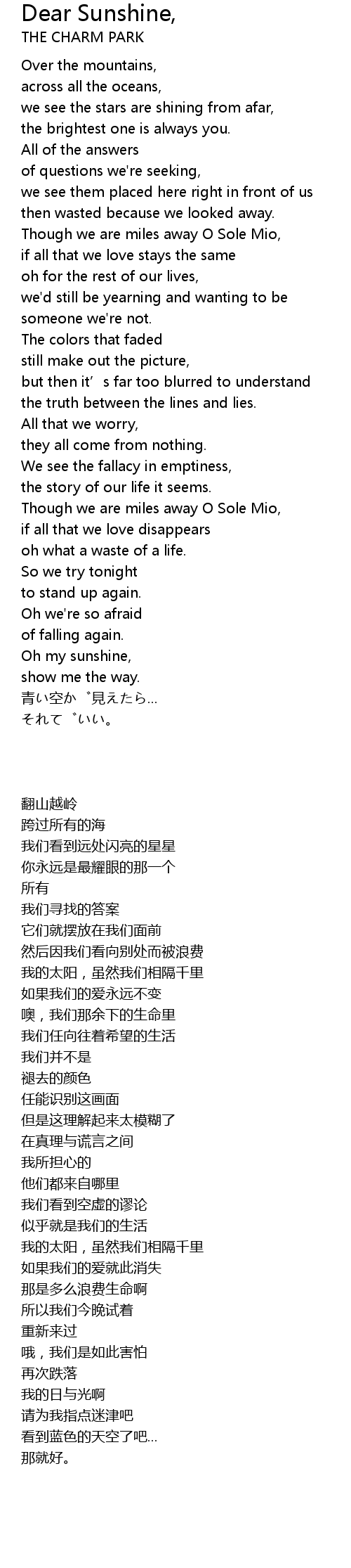 | Song | Dear Sunshine, |