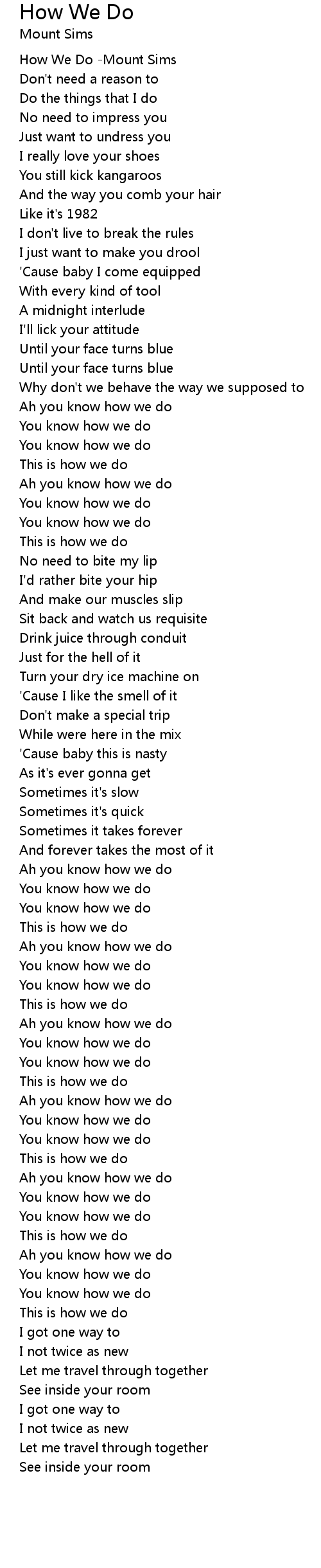 How We Do -Mount Sims |