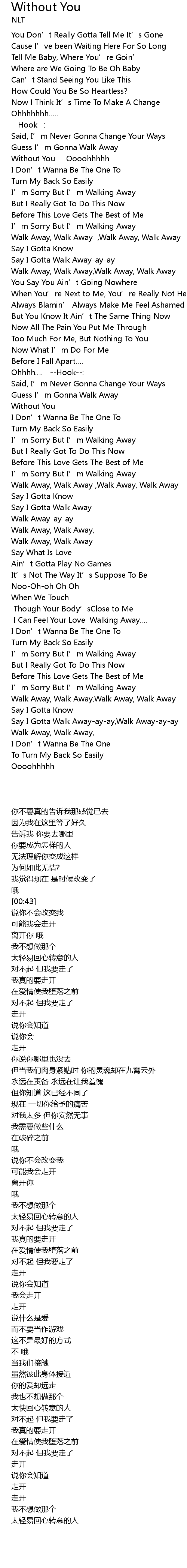 | [03:42] | Say I Gotta Walk Away-ay-ay,Walk Away-ay-ay |