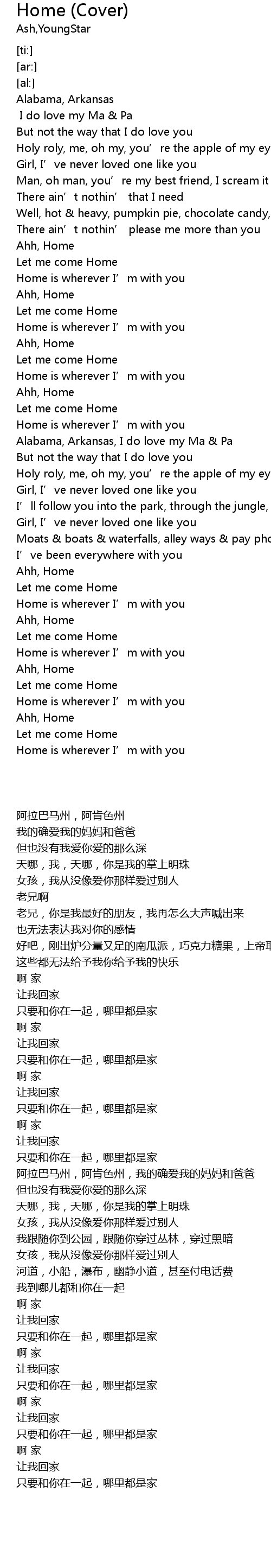 | [02:18.98] | Home is wherever I' m with you |