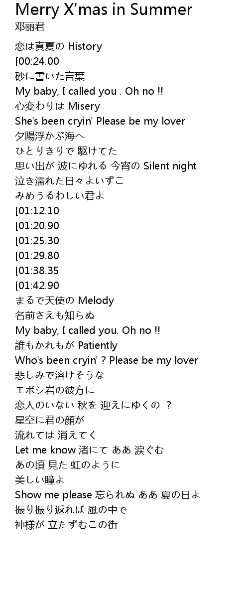 | [02:00.40][00:24.00] | I' ve been cryin', X' mas in summer |