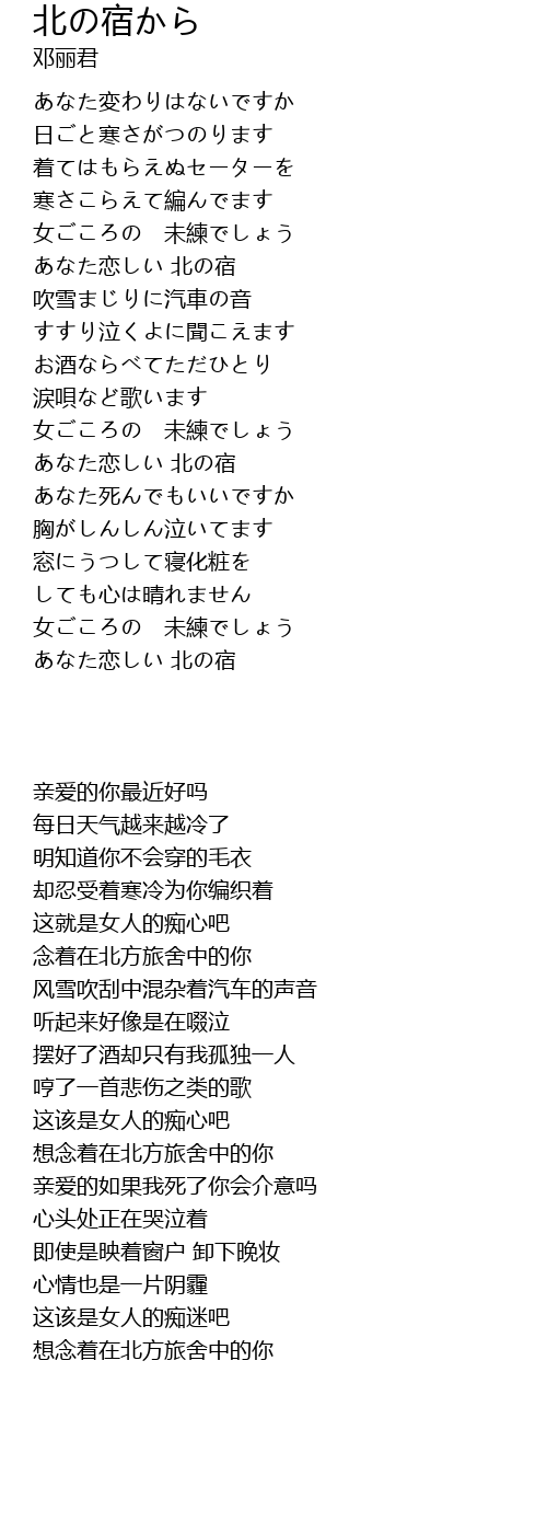 あなた恋しい 北の宿 |