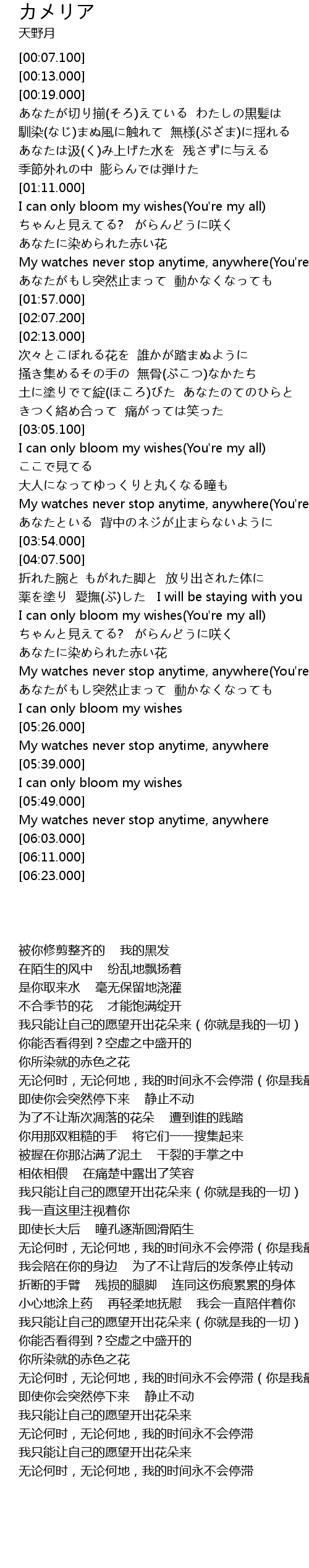 | [03:06.000] | I can only bloom my wishes You' re my all |